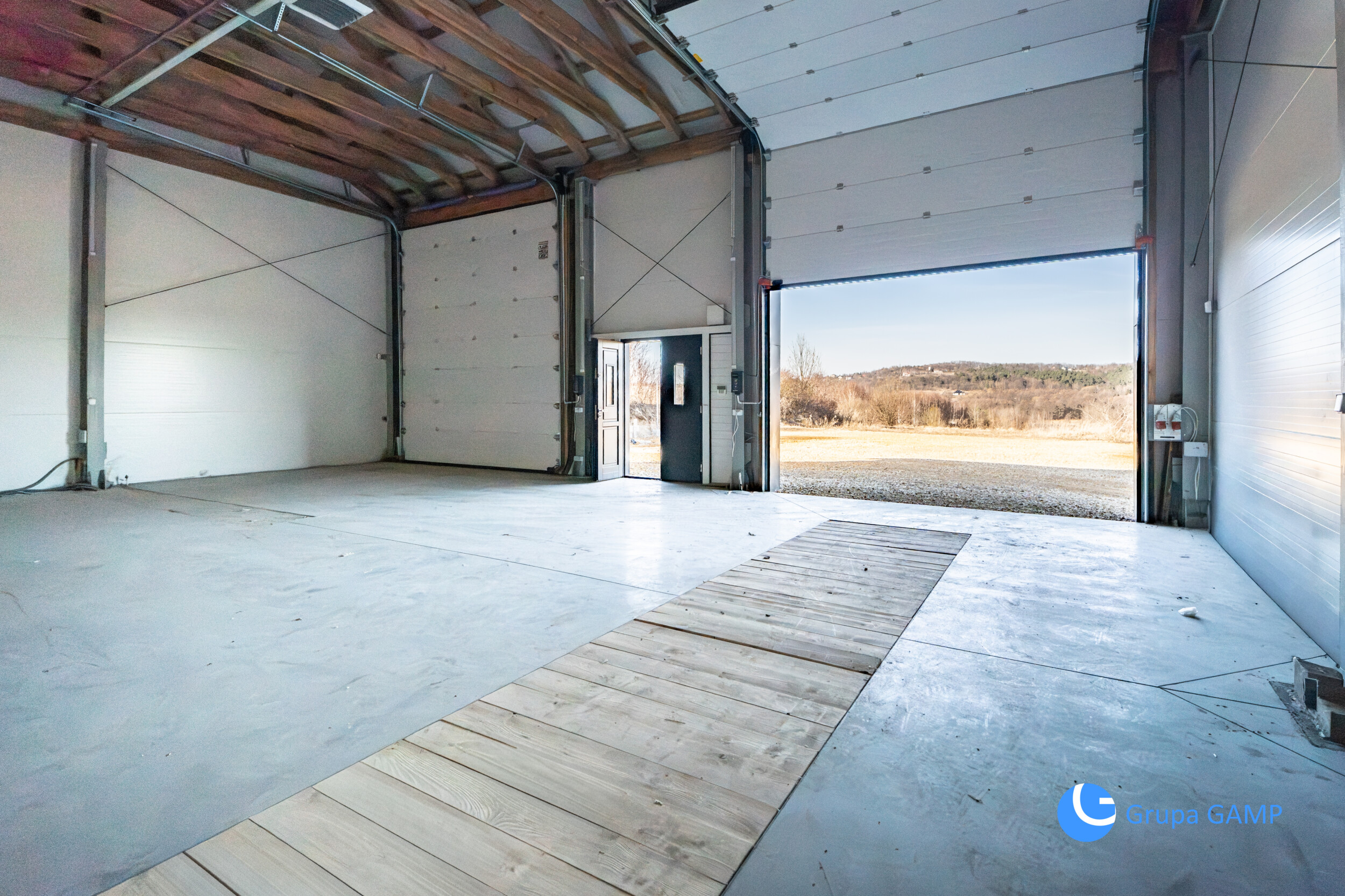 A modern industrial and production hall is available for rent in a strategic location in Grojec, Alwernia commune, directly off the A4 motorway. The property is located just 2 km from the Tenczynek motorway junction, providing excellent connections to both Krakow and Katowice, as well as quick access to major transport routes in southern Poland. It’s an ideal option for companies seeking functional space for manufacturing, warehousing, logistics, or service operations, with very convenient access for heavy transport. The hall is located on a 350 m² plot designated for industrial and production purposes. The facility was designed with comfortable and efficient operation in mind, featuring two garage doors and a car pit. The interior features a durable, industrial-grade concrete floor suitable for intensive use, making the facility ready for immediate operation.