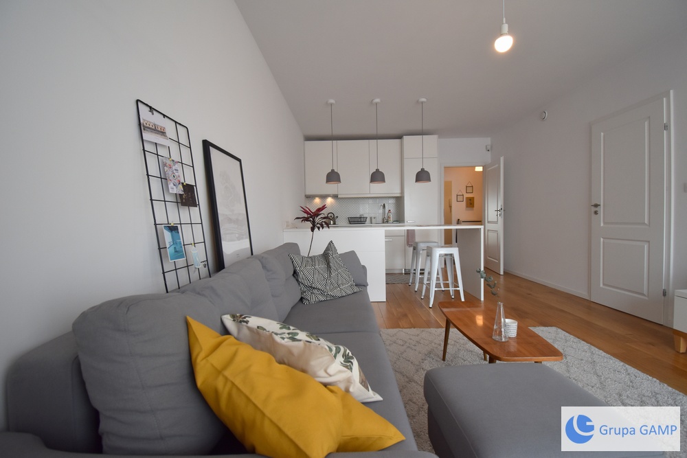 For rent, from May 1st 2026 a 2-room apartment with an area of 44 m2 in an attractive investment – Garden Residence in Krakow’s Zabłocie.