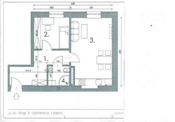 Available for rent immediately: a 2-room apartment with an area of 42 m2 on Świętej Kingi Street in Krakow!