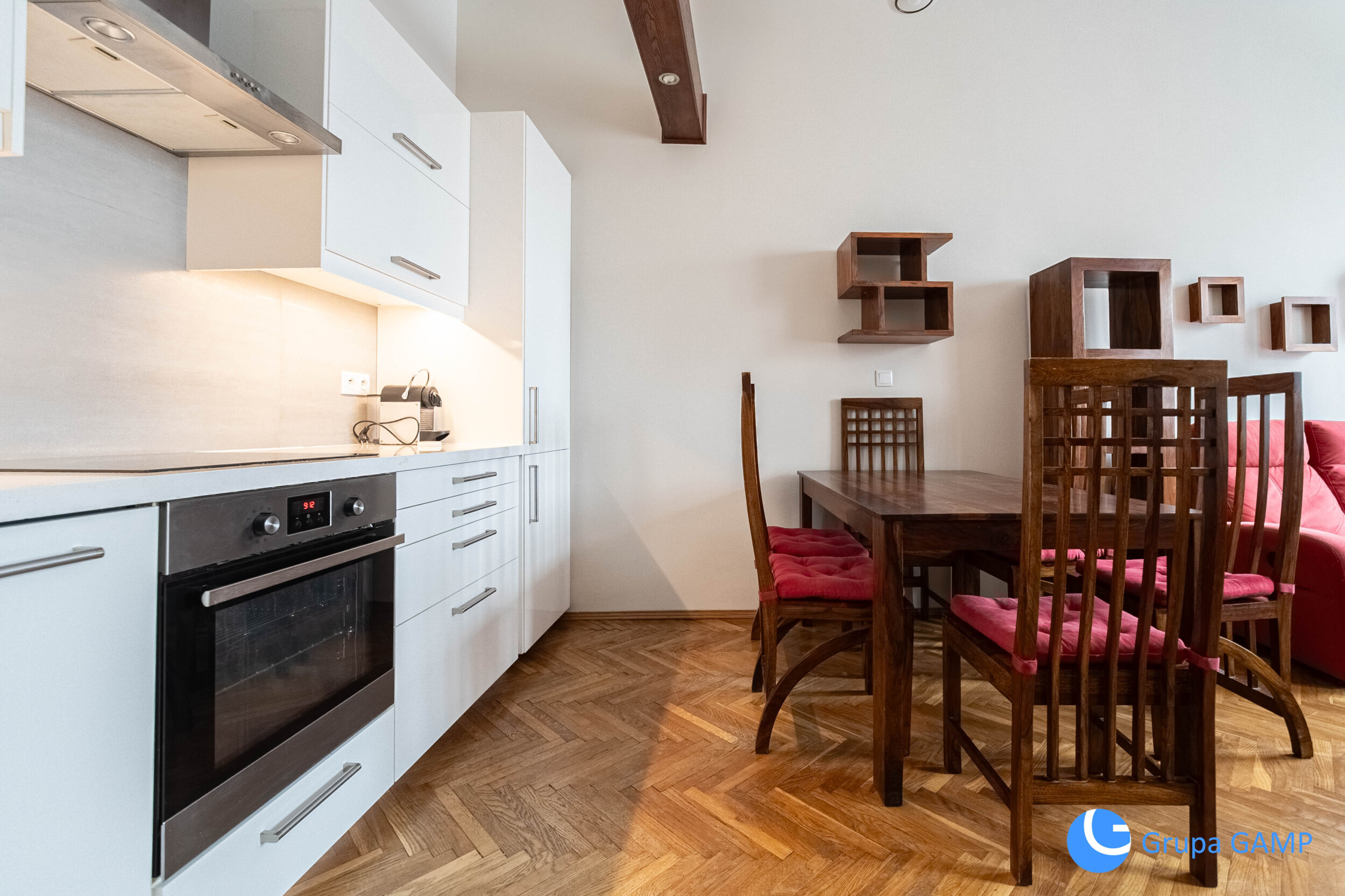A cozy 42-square-meter apartment is available for rent on Szlak Street! The apartment is located on the first floor of a tenement building and comprises a living room with a kitchenette, a bedroom with a large wardrobe, a separate study, and a bathroom with a shower. Additional space includes a storage room above the hallway and a cellar, all included in the rental price.
