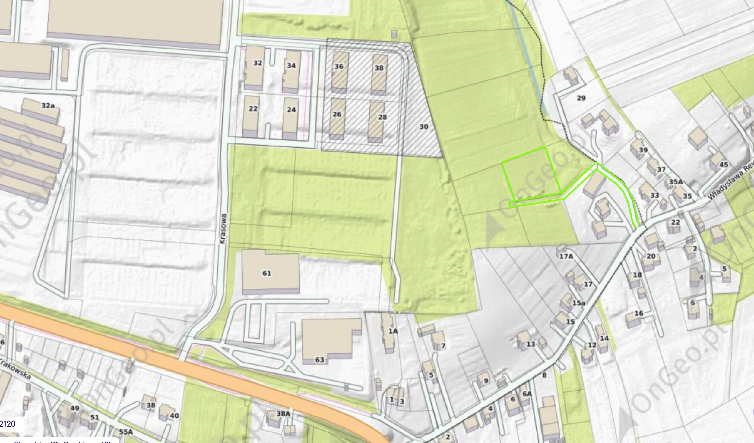An attractive 2,392 m² investment plot is for sale, located in a dynamically developing part of Krzeszowice, adjacent to a new residential development. This property is an excellent option for developers seeking land for a small residential project in a prime location in terms of transportation and infrastructure. According to the local zoning plan, the plot is located in zone MN1.1 – single-family housing, offering a wide range of investment opportunities. The plan allows for detached, semi-detached, terraced, or grouped developments, allowing for flexible development planning and optimal utilization of the plot’s potential.