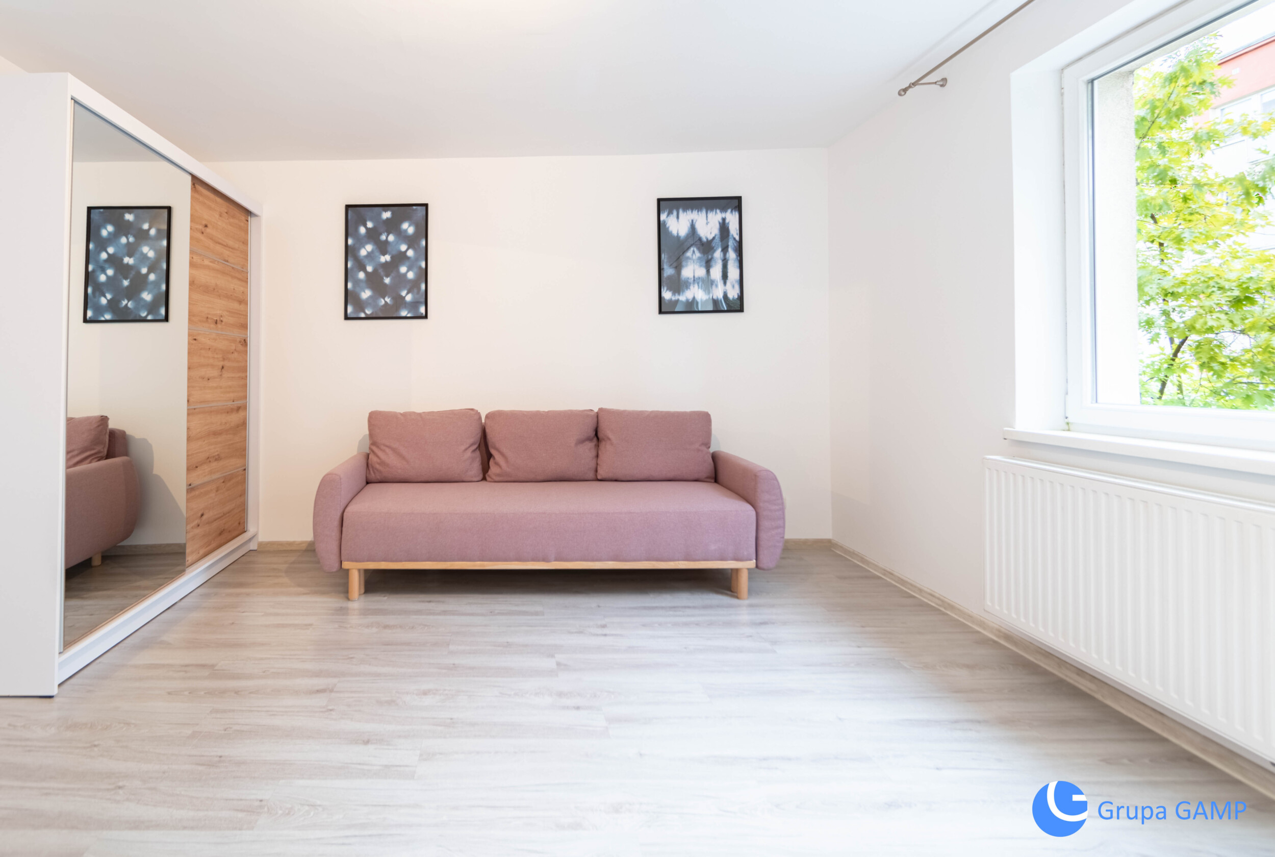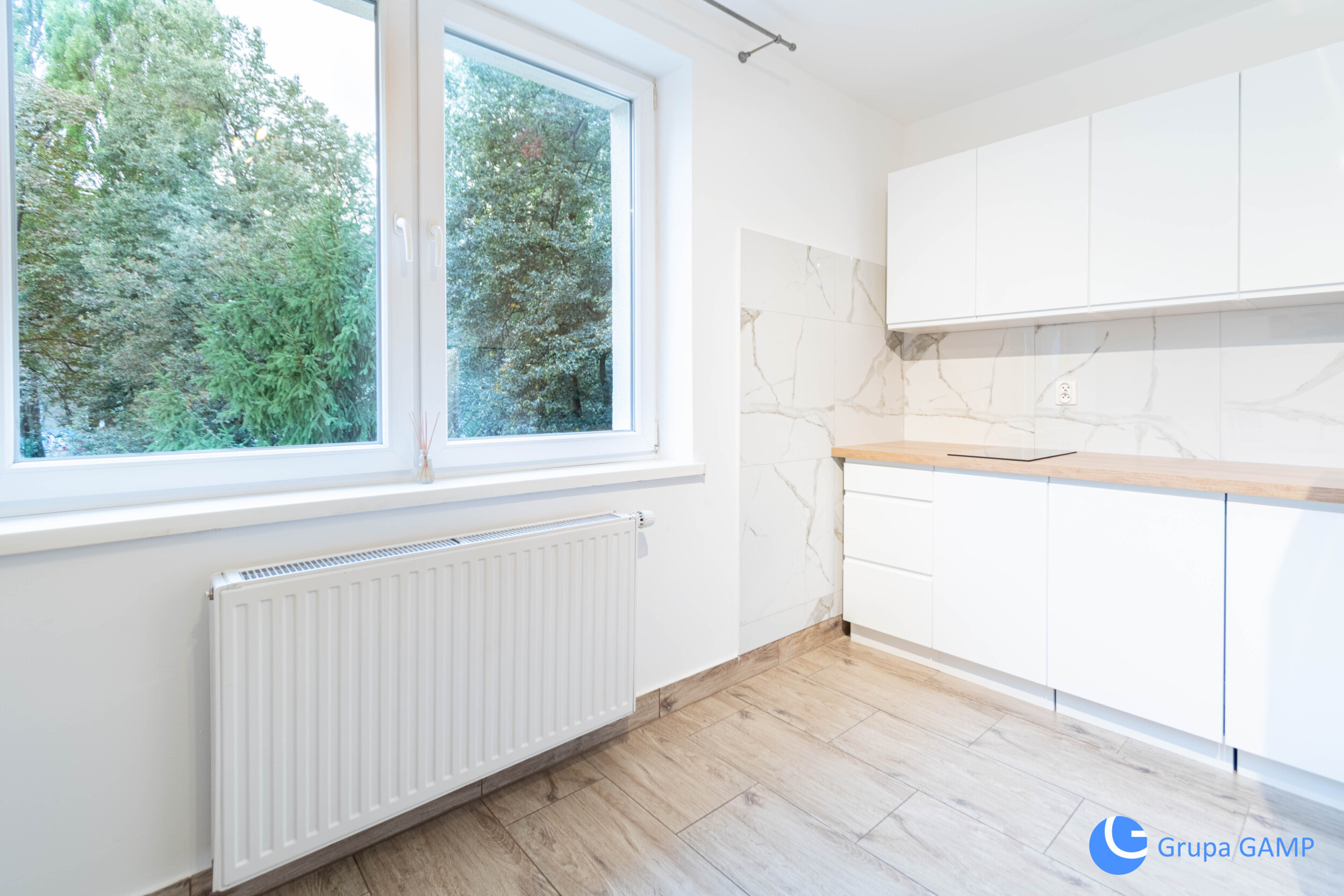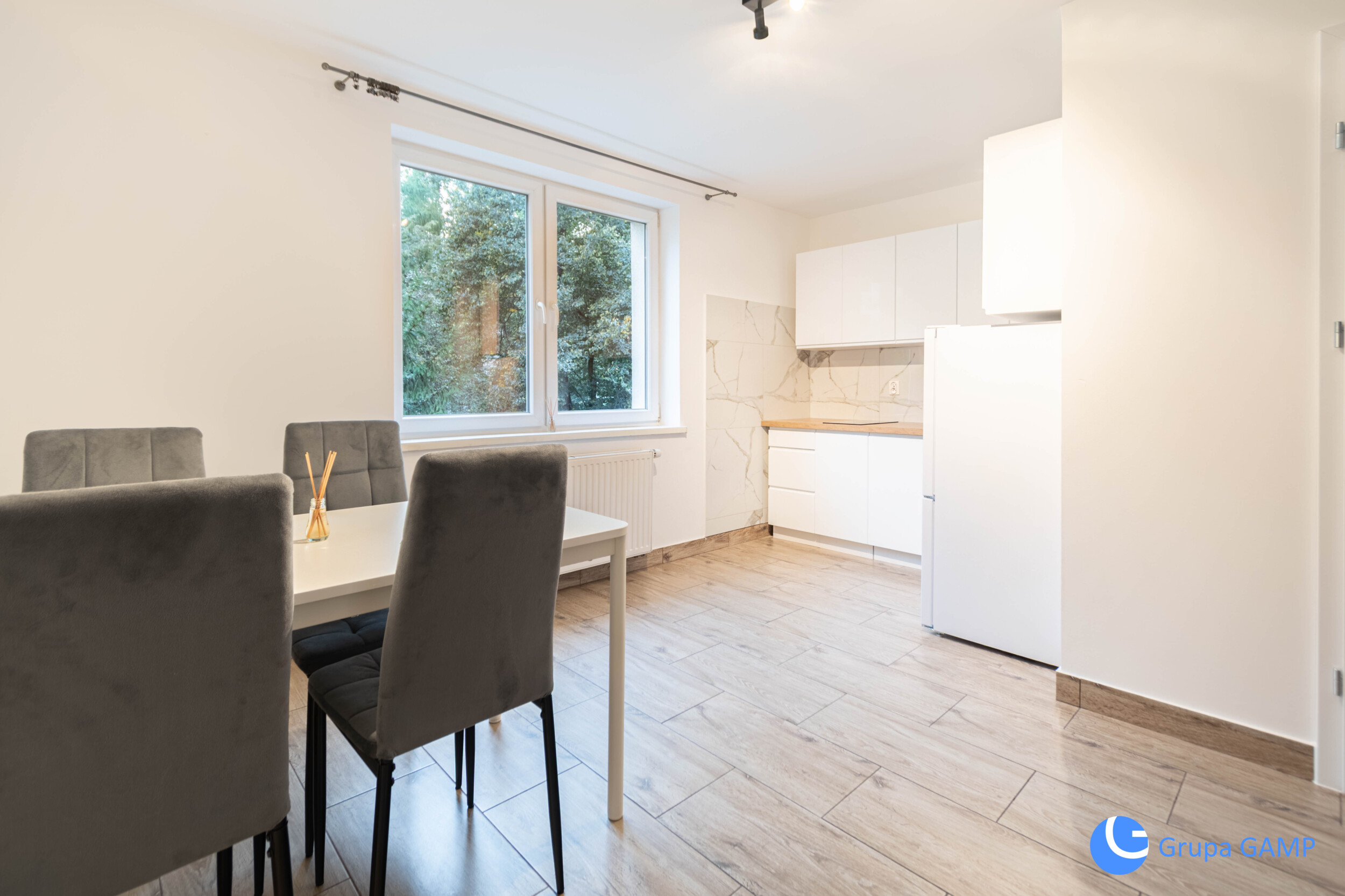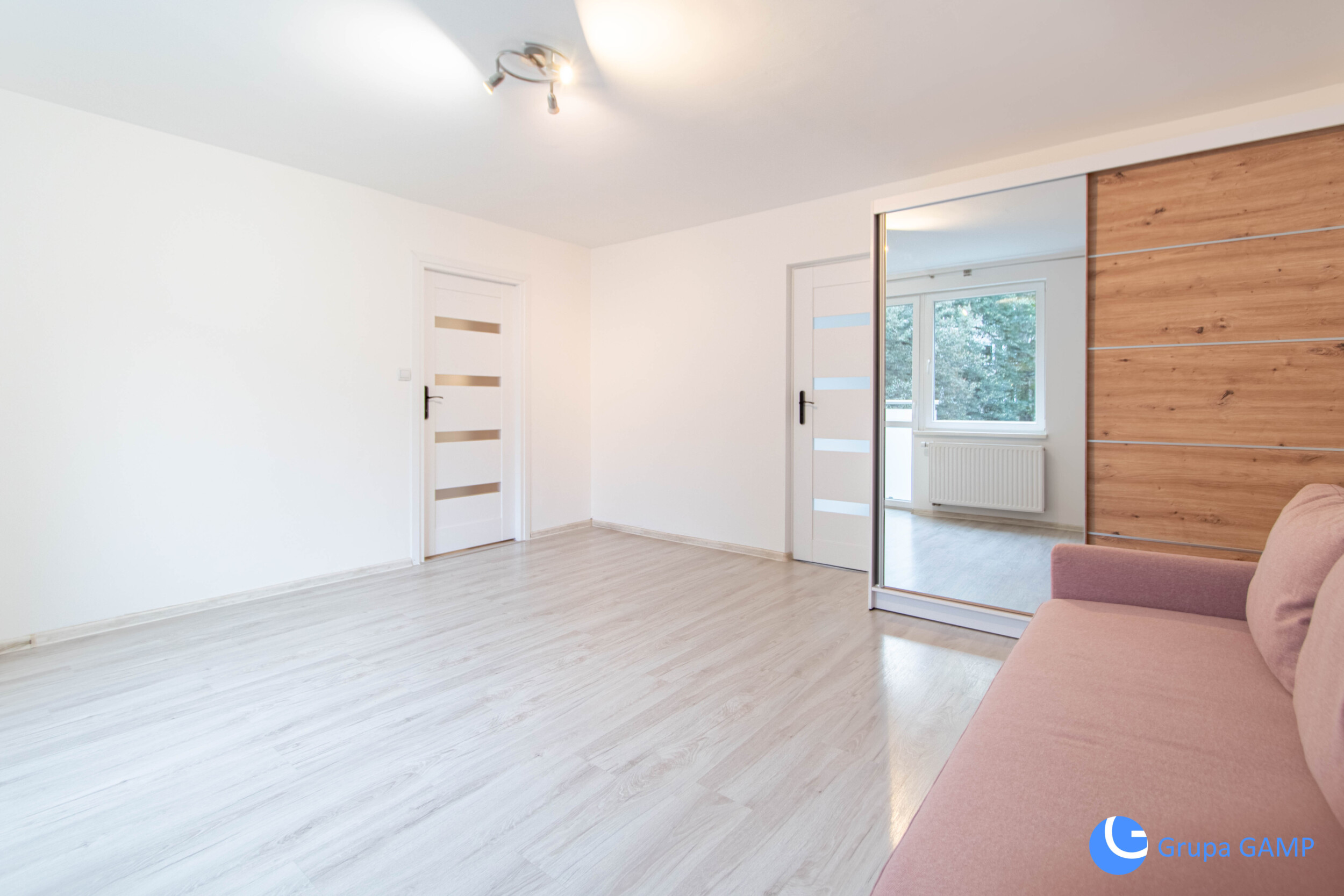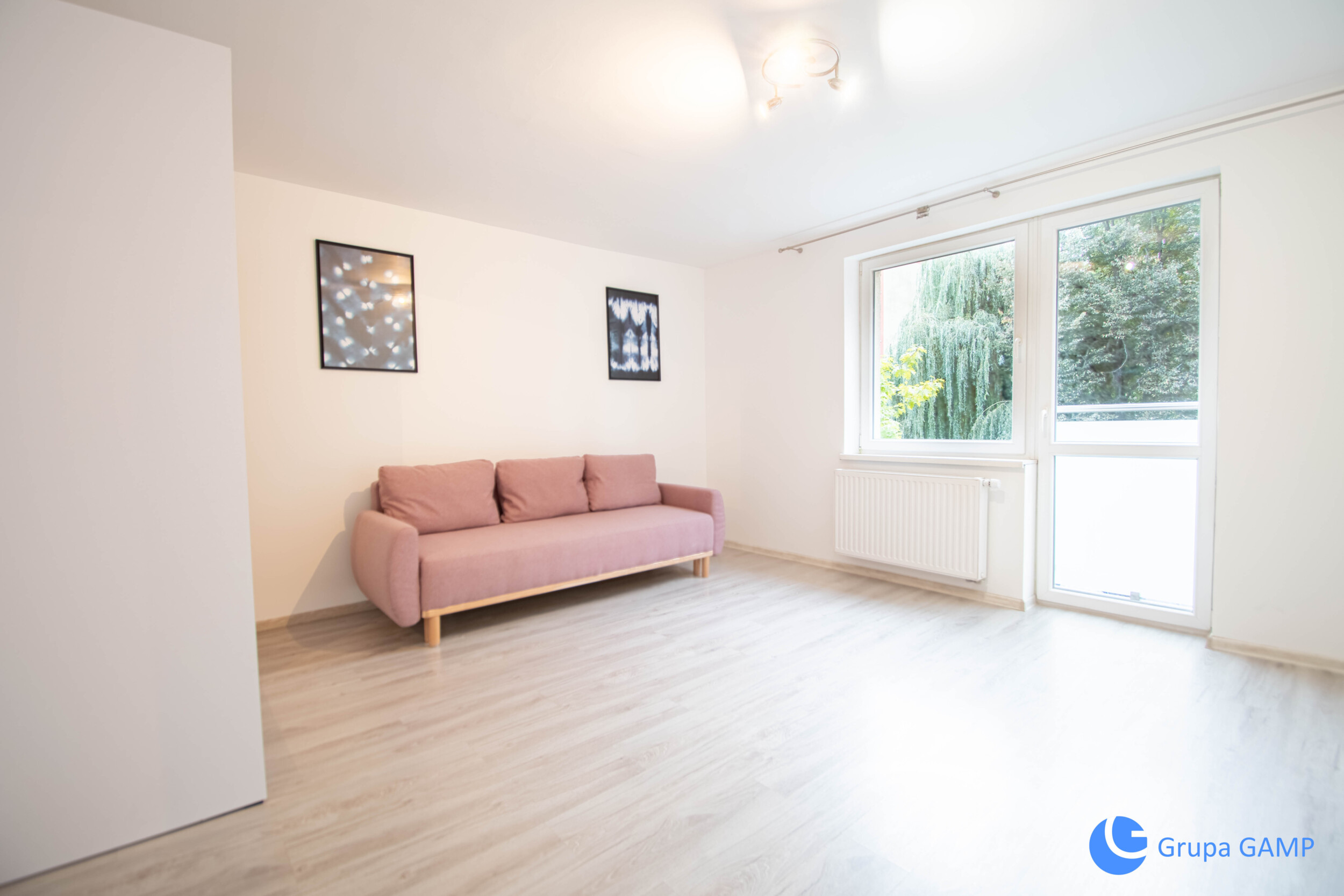 Do wynajęcia od 1 maja, 2-pokojowe mieszkanie o powierzchni 42 m2 przy os. Złotej Jesieni w dzielnicy Mistrzejowice w Krakowie. Nieruchomość znajduje się na drugim piętrze w kameralnym bloku i składa się z kuchni z jadalnią, pokoju dziennego, małego pokoju/ gabinetu oraz łazienki.