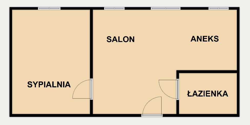 Rozkład pomieszczeń: salon z aneksem kuchennym + sypialnia + łazienka (wanna z funkcją prysznica);