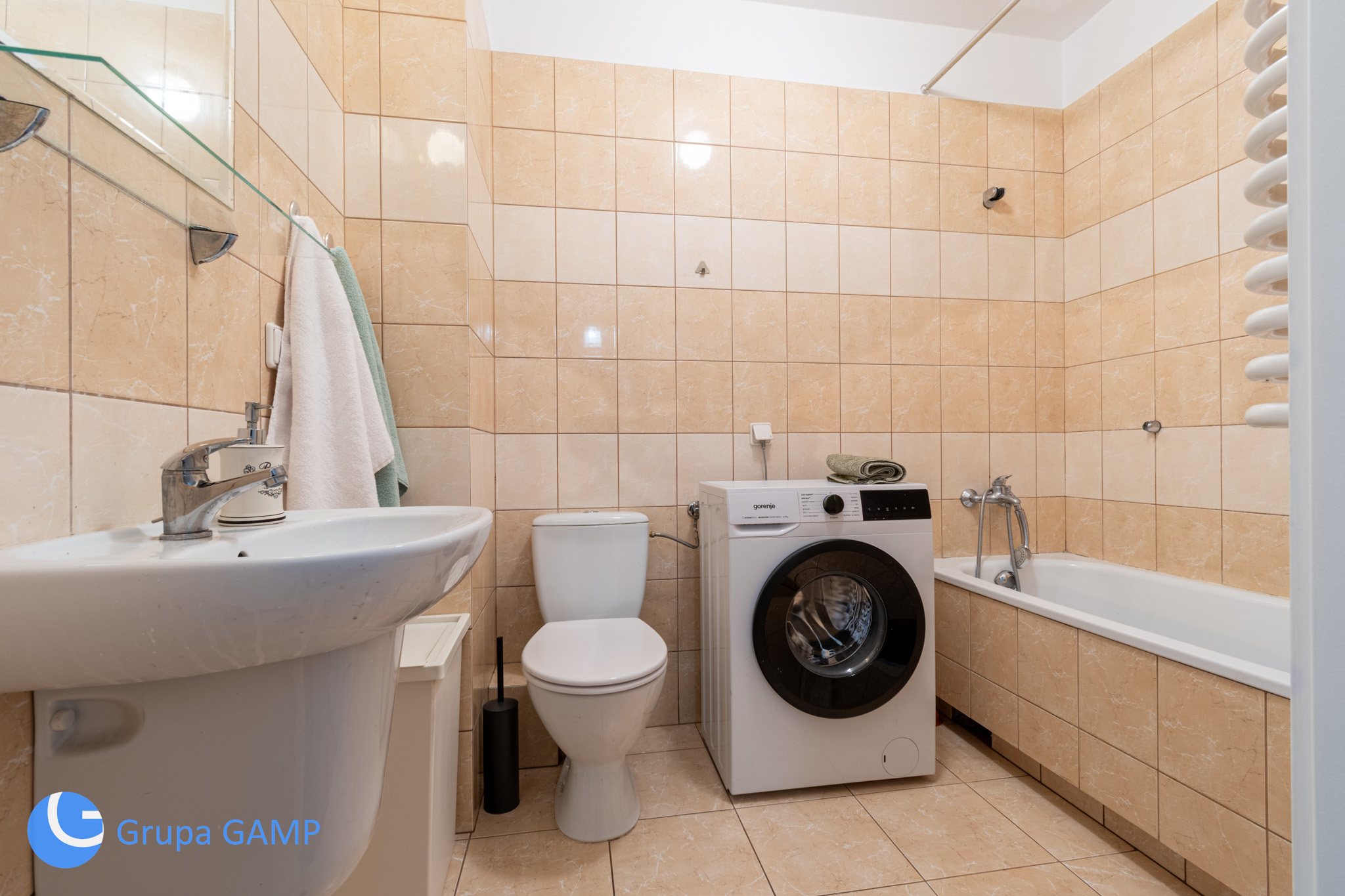 – łazienka: wanna, umywalka, toaleta, pralka;