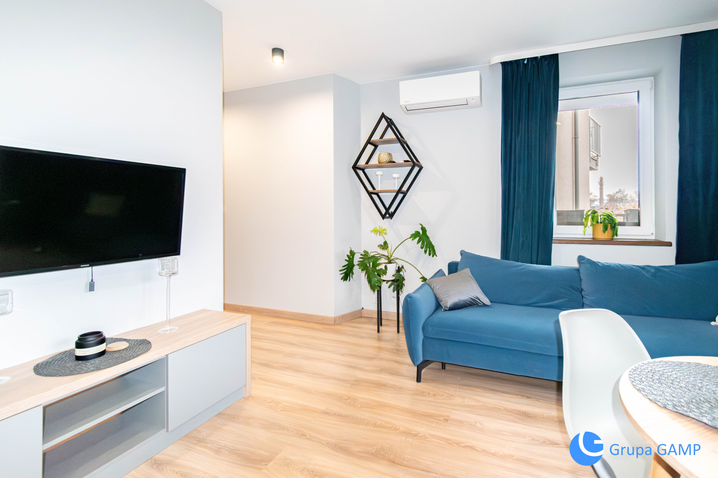 Nieruchomość składa się z pokoju dziennego (umeblowany o rozkładaną kanapę , segment RTV, telewizor, stół jadalniany z 3 krzesłami, półki ścienne), aneksu kuchennego (meble w zabudowie, piekarnik elektryczny, płyta indukcyjna, zlewozmywak, lodówka, zamrażarka, mikrofala, czajnik-możliwość doposażenia przez właściciela), sypialni (łóżko, zabudowana szafa, 2 stoliki nocne, regał z komodą), łazienki (umywalka, kabina prysznicowa, pralka, toaleta, szafki), przedpokoju (biurko z krzesłem, wnęka z wieszakami, szafki), dużego balkony ok. 14m2.