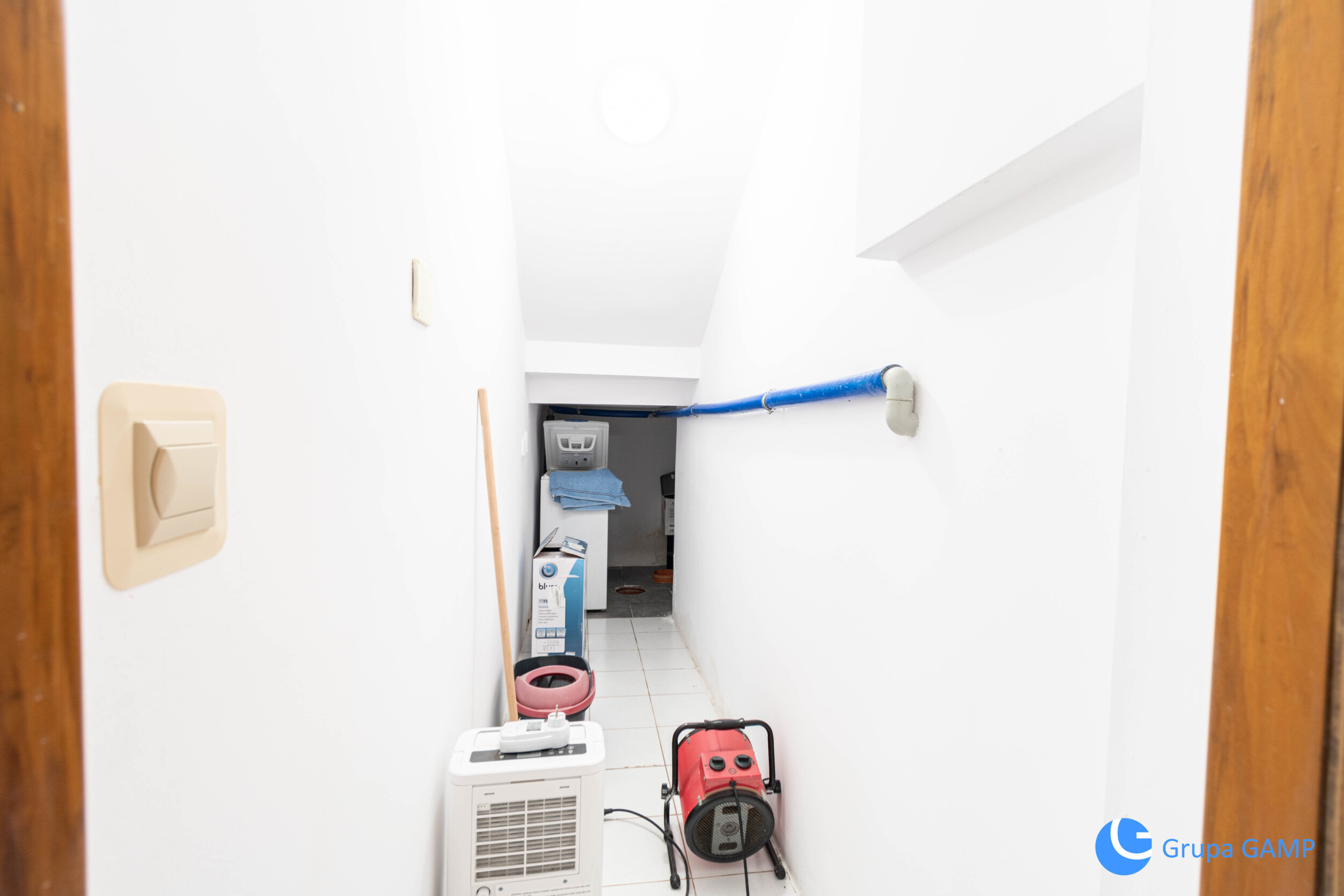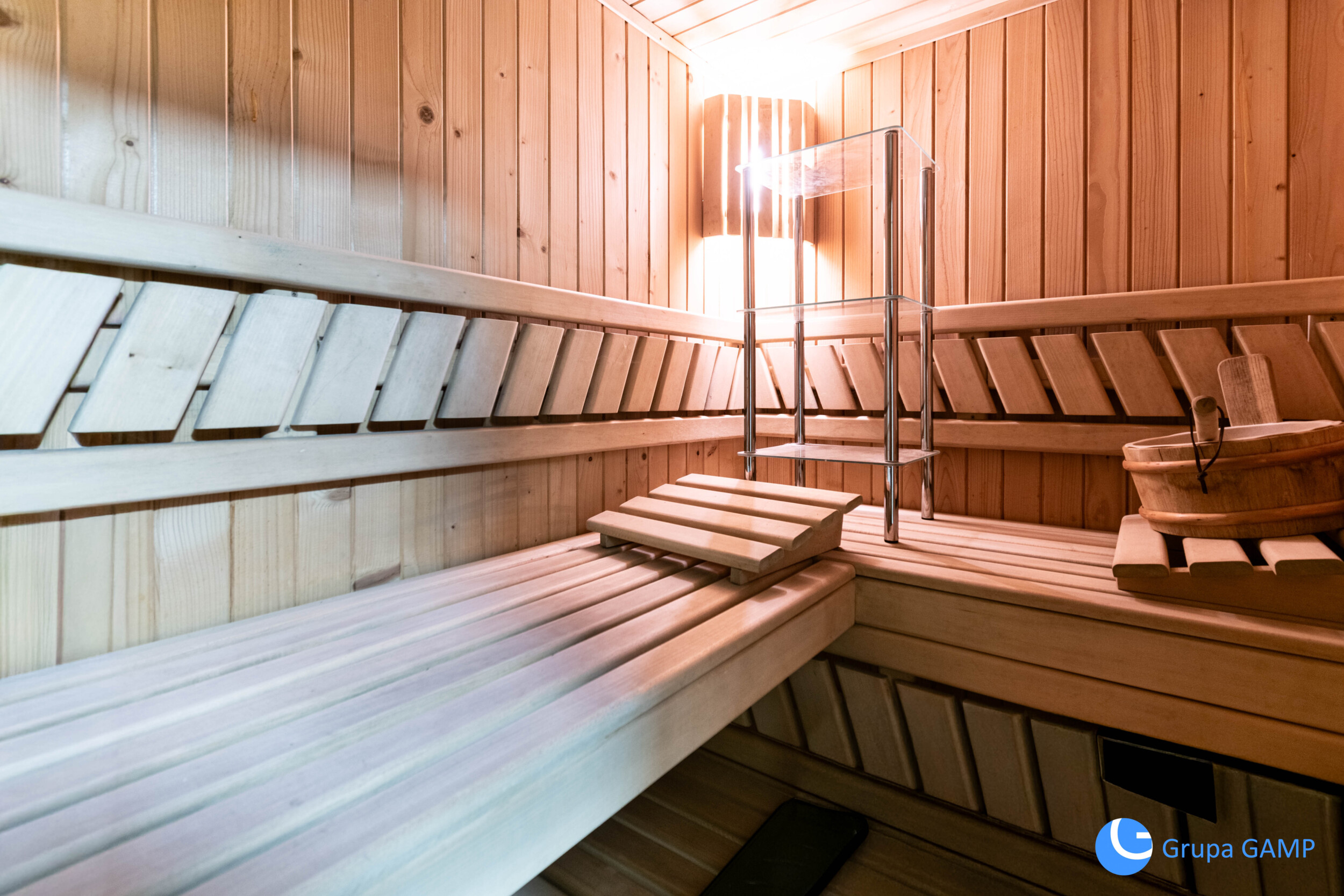 Nieruchomość składa się z pokoju dziennego (umeblowany o kanapę, stolik kawowy, segment RTV, komodę, telewizor), oddzielnej kuchni (meble w zabudowie, piekarnik elektryczny, płyta indukcyjna, mikrofala, czajnik, zlewozmywak, lodówka, zamrażarka), sypialni (łóżko, stolik nocny, zabudowana szafa), łazienki (umywalka, kabina prysznicowa, pralka, toaleta, sauna), przedpokoju, pralni (pralka, wanna).