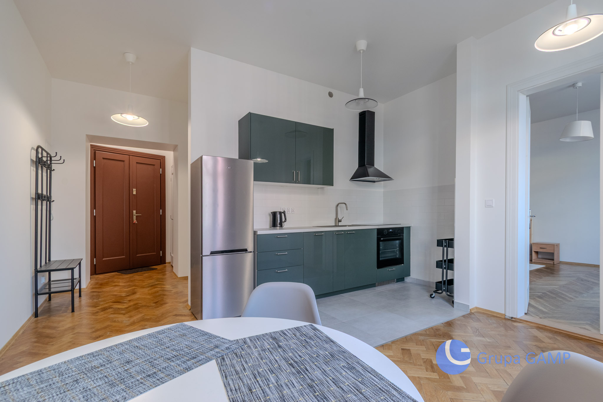 Rozkład pomieszczeń: pokój z aneksem kuchennym (możliwe dodatkowe umeblowanie) + sypialnia + łazienka;