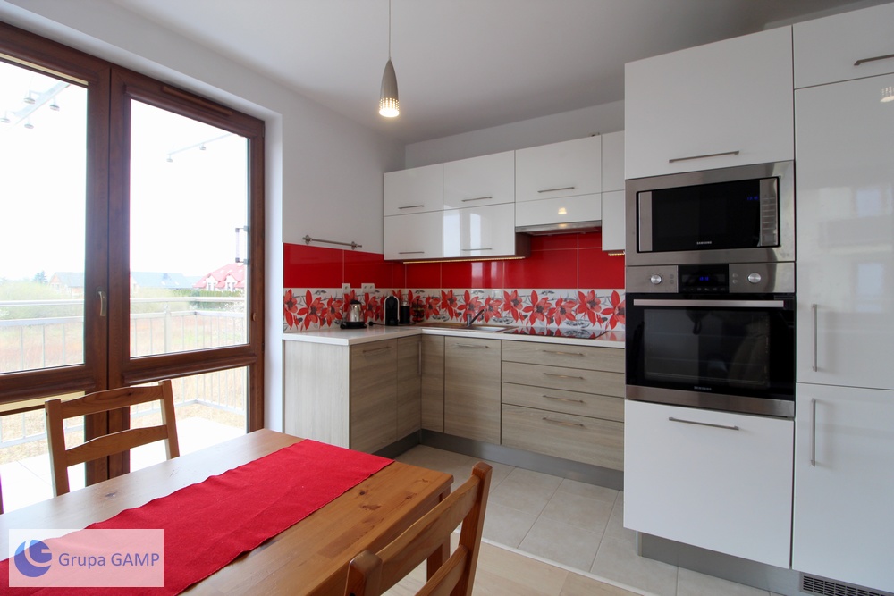 Wyposażenie dodatkowe: zmywarka, piekarnik, mikrofala, płyta indukcyjna, pełne umeblowanie.