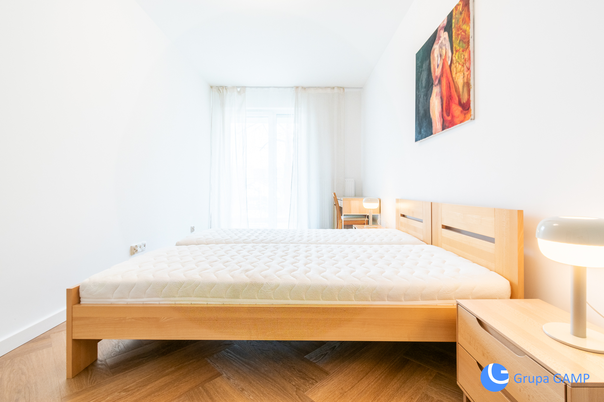 – sypialnia w której znajduję się: łóżko, biurko i stol, szafa,
