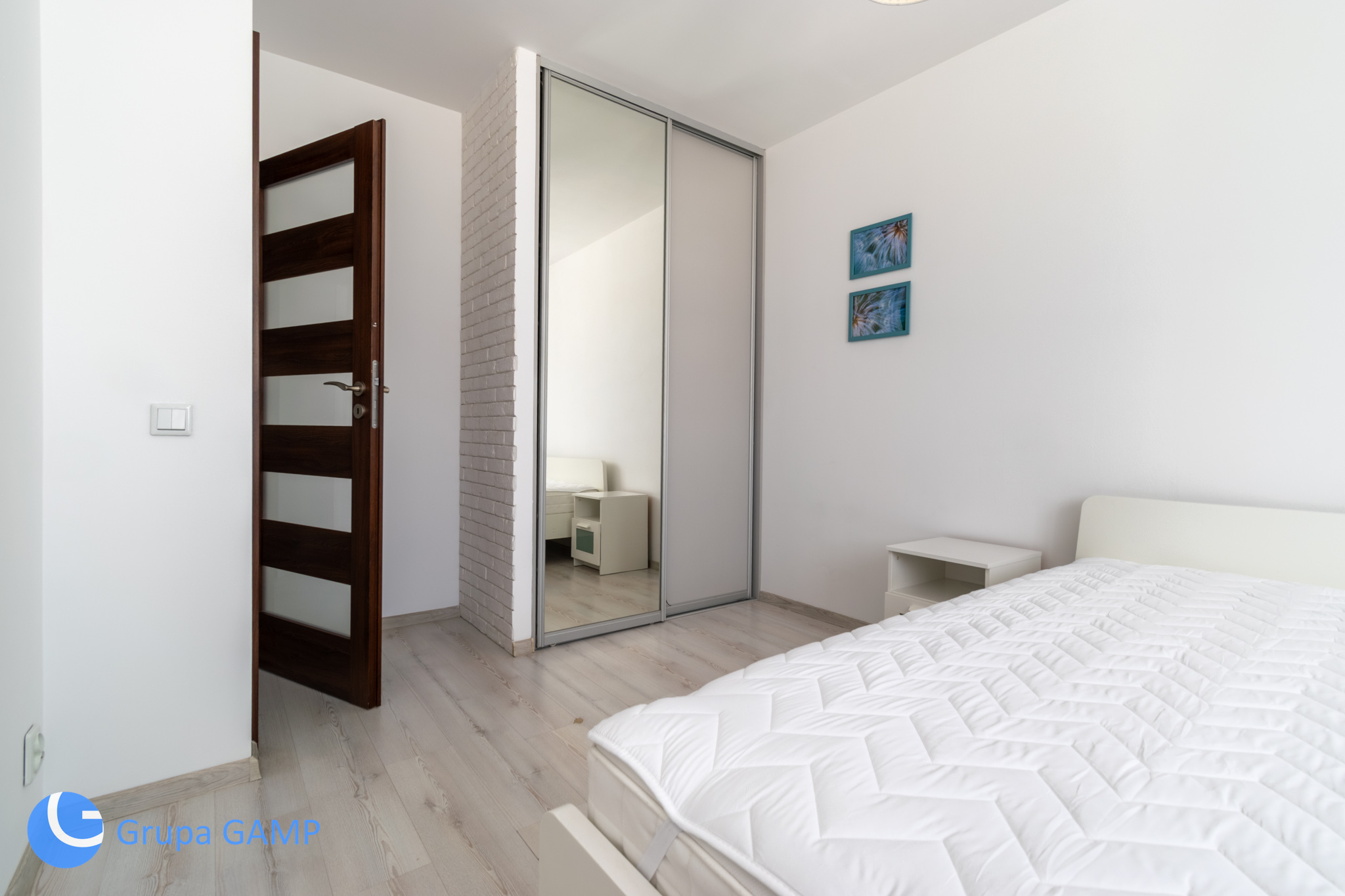 - Sypialnia: Wygodne łóżko dwuosobowe i pojemna szafa.