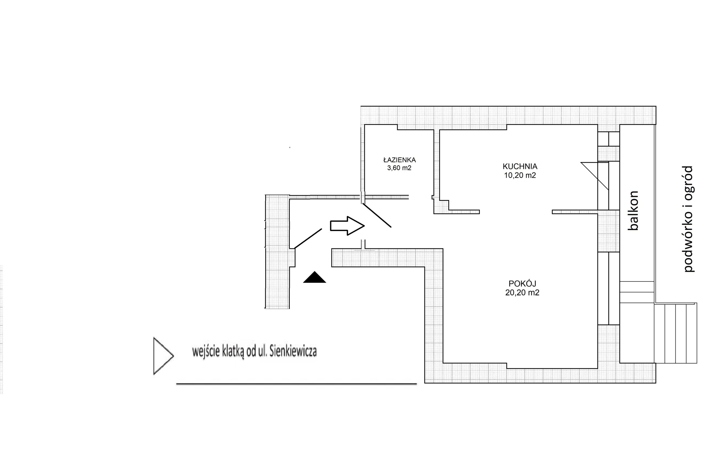 Powierzchnia dodatkowa: balkon z ekspozycją na dziedziniec i dostępem do ogródka;
