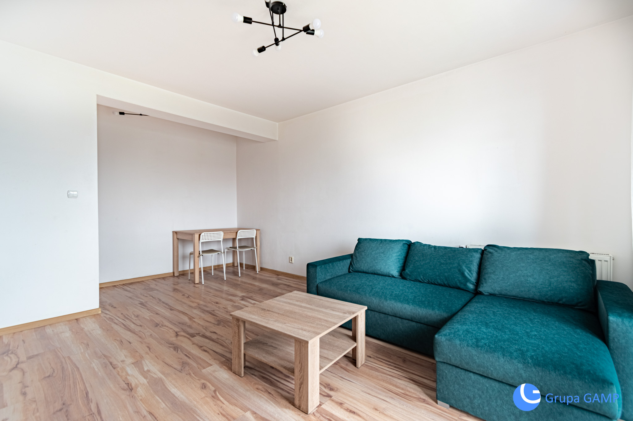 Mieszkanie składa się z przestronnego pokoju (wyposażonego w rozkładaną kanapę, stół z krzesłami, szafę oraz wyjście na balkon), oddzielną kuchnię (wyposażoną w lodówkę, płytę indukcyjną, zlewozmywak oraz mikrofalę) oraz łazienki (wyposażonej w wannę z funkcją prysznica, WC, umywalkę oraz pralkę).