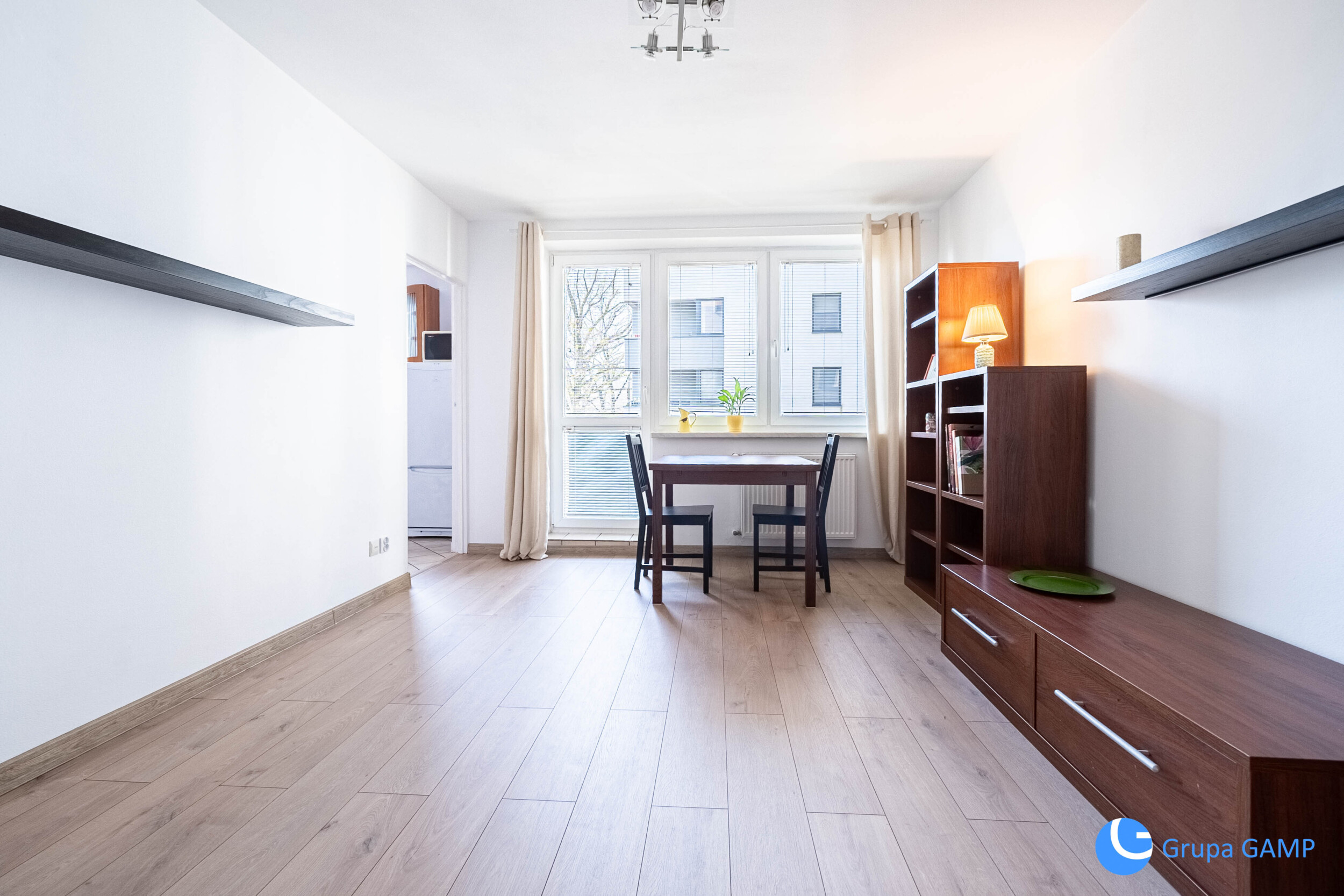 Nieruchomość składająca się z salonu, sypialni, oddzielnej kuchni, łazienki, przedpokoju oraz balkonu.
