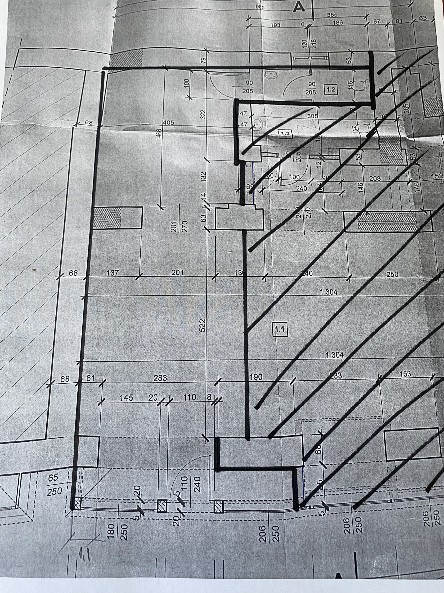 Parter: pomieszczenie 45,7m2, toaleta 4,3m2,
