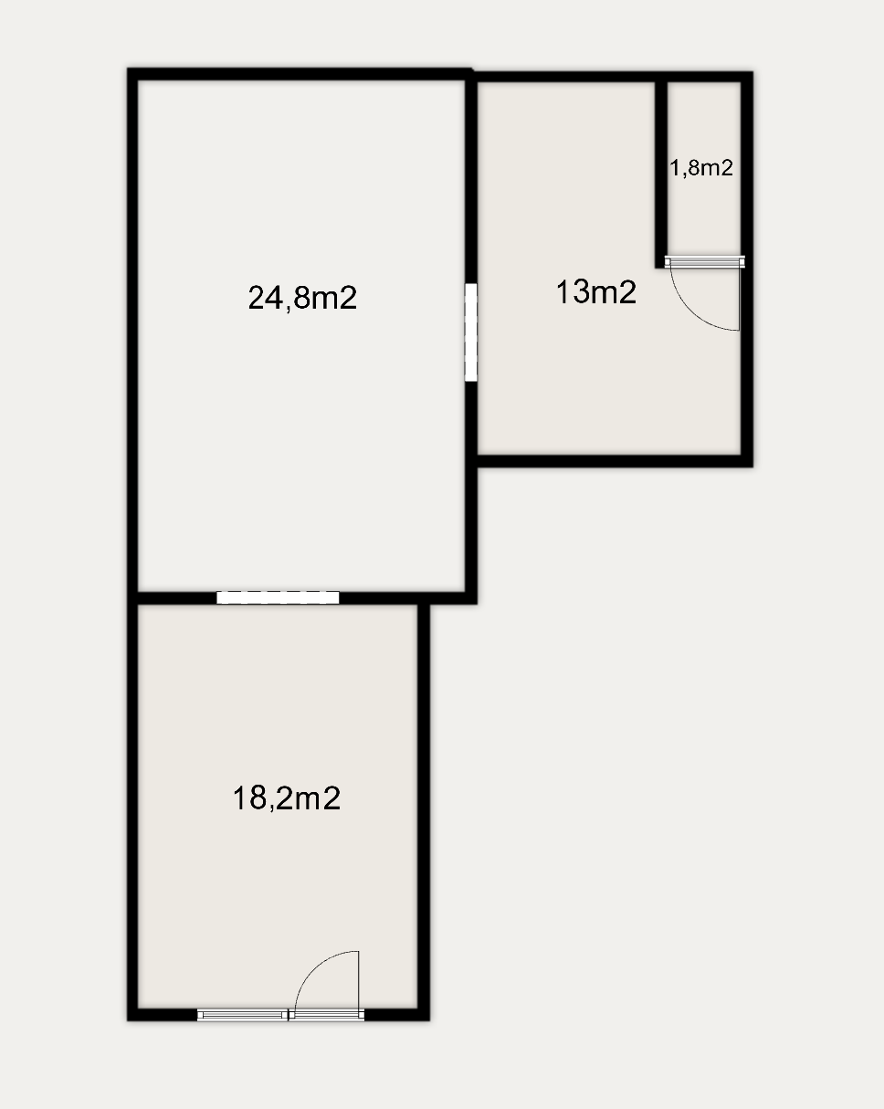 Parter: trzy pomieszczenia (18,2m2|24,8m2|15m2) oraz toaleta 1,8m2,