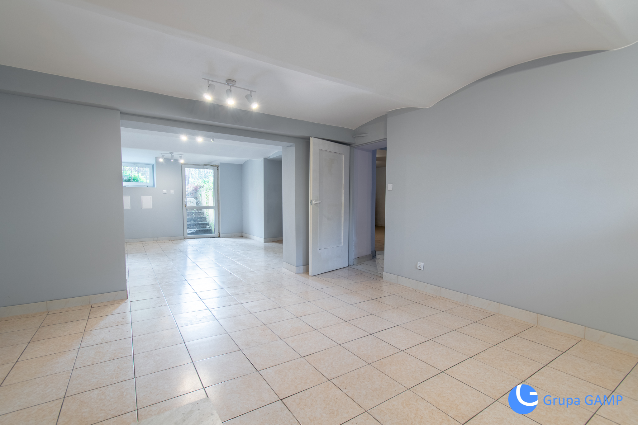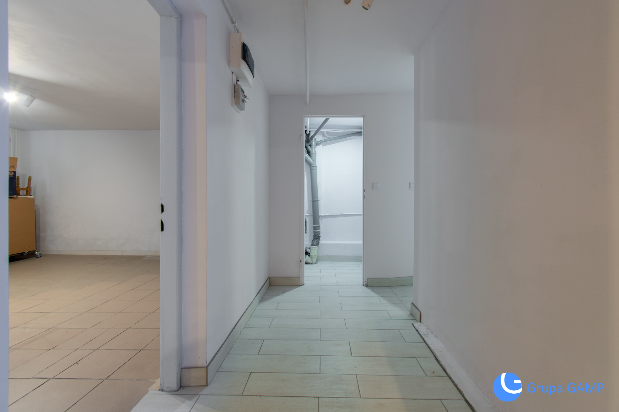 Budynek: przyziemie domu, wejście od Dobrego Pasterza, teren zielony przed budynkiem