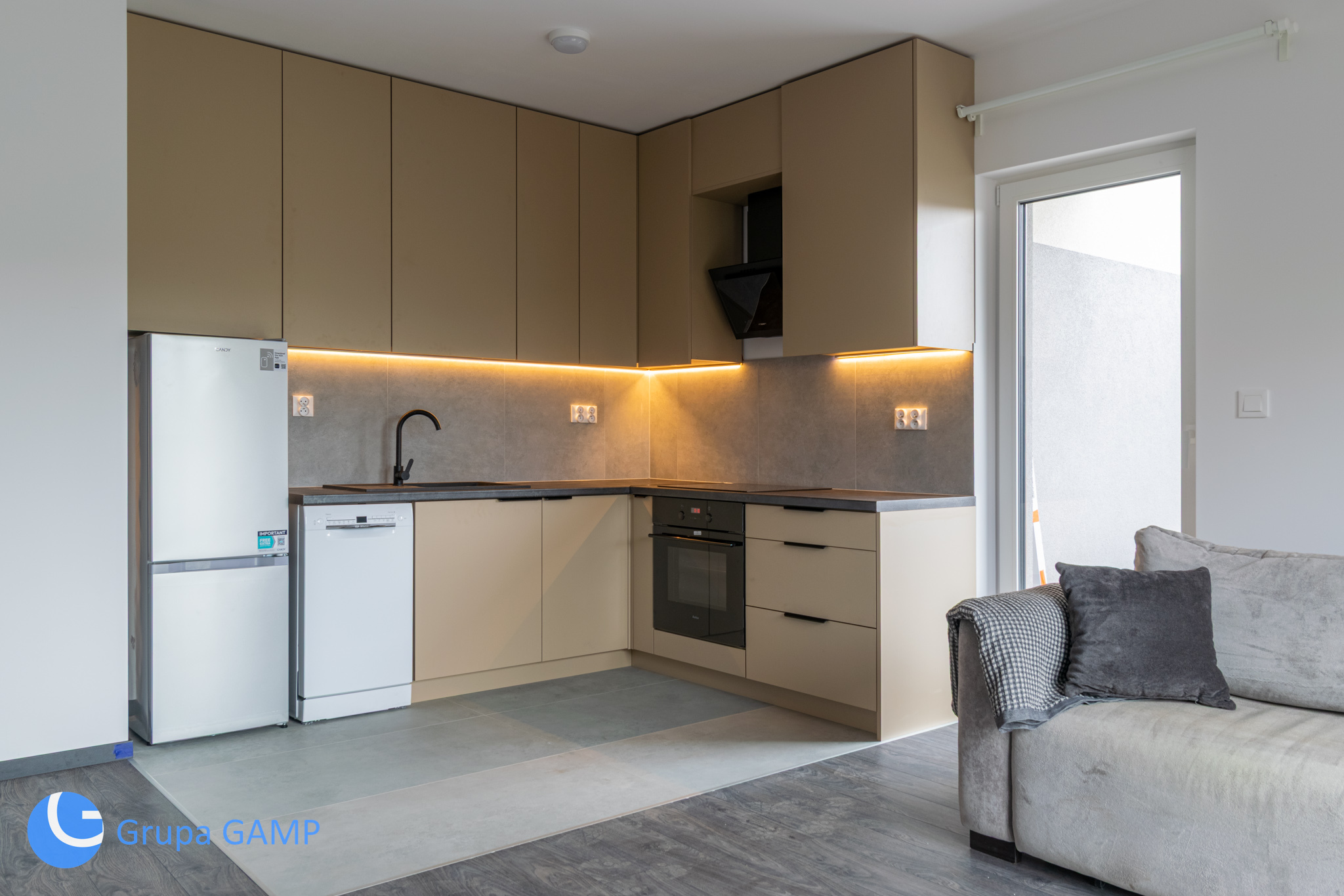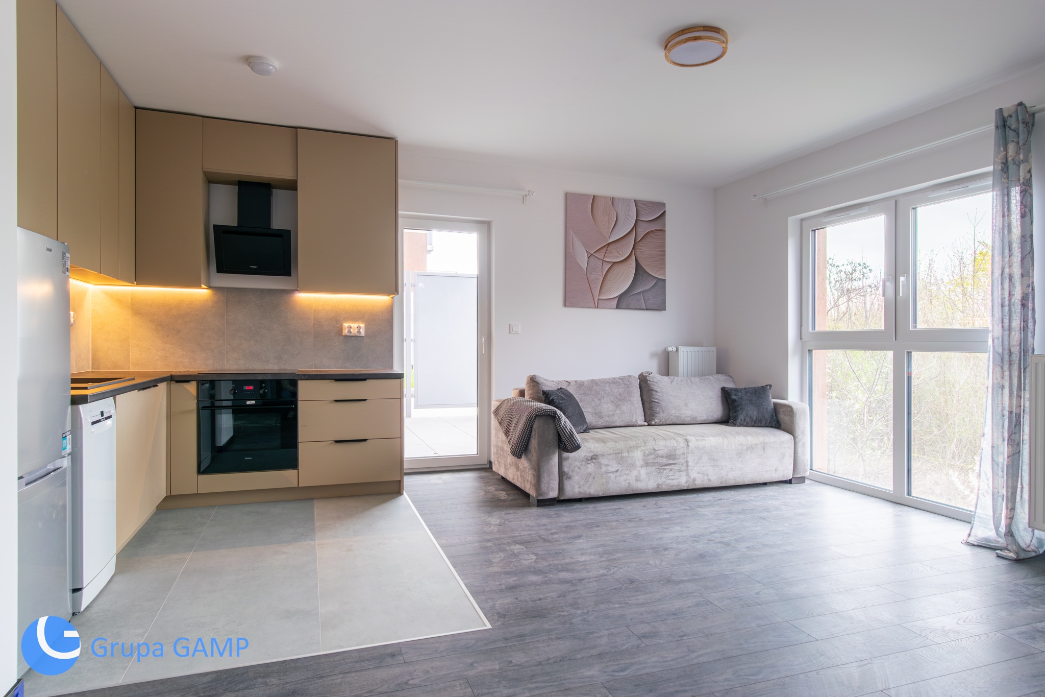• Przestronny salon z aneksem kuchennym, z wyjściem na taras ok. 13 m2 – idealne centrum życia rodzinnego,