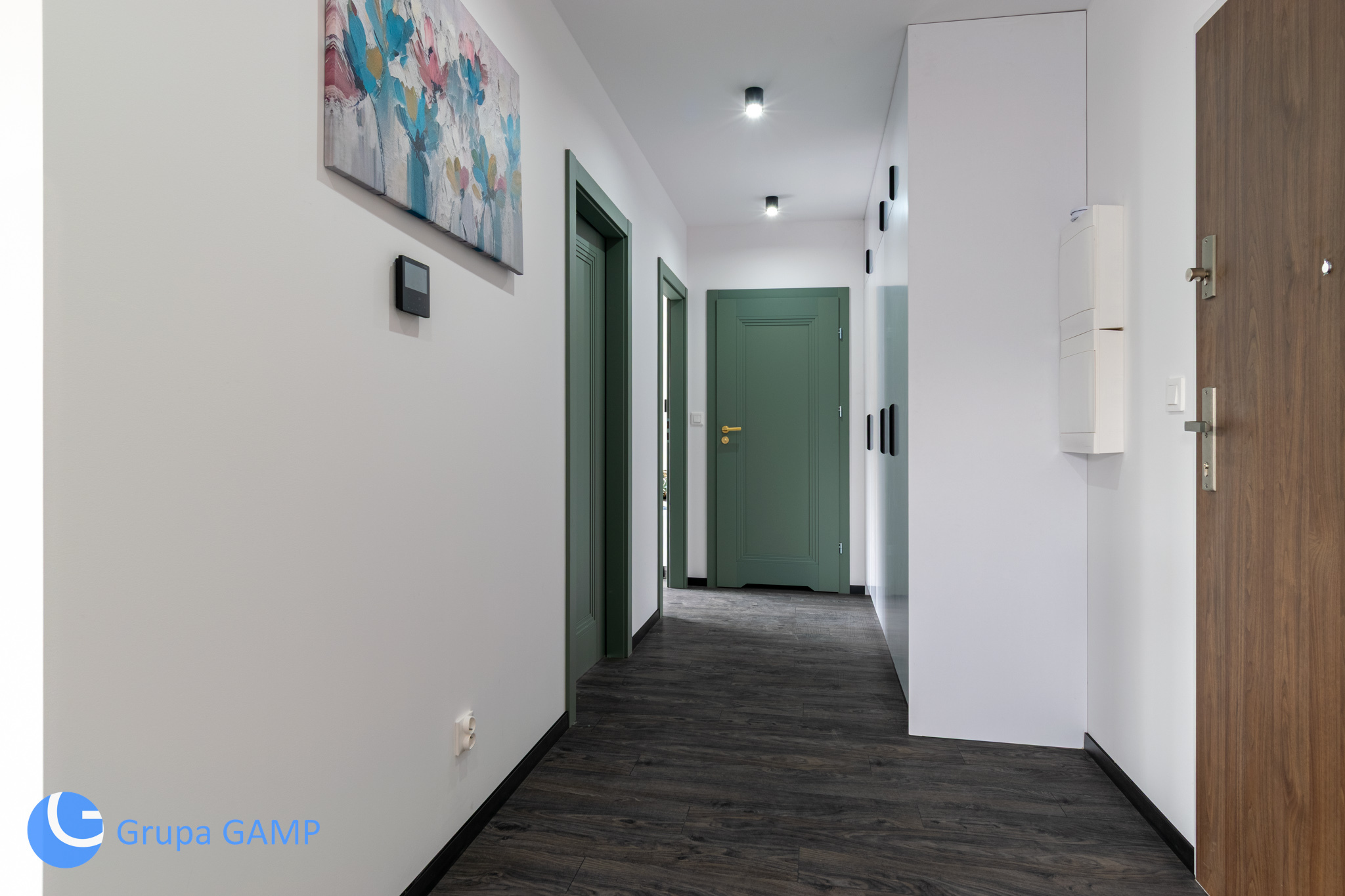 • Funkcjonalny przedpokój z pojemną zabudową garderobianą,