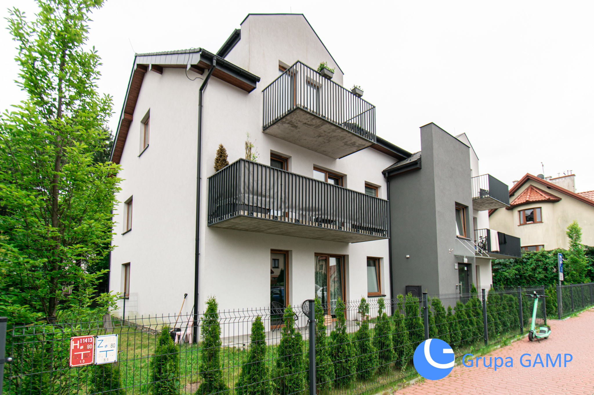 Budynek: Niski blok mieszkalny z 2020r. teren monitorowany, ogrodzony