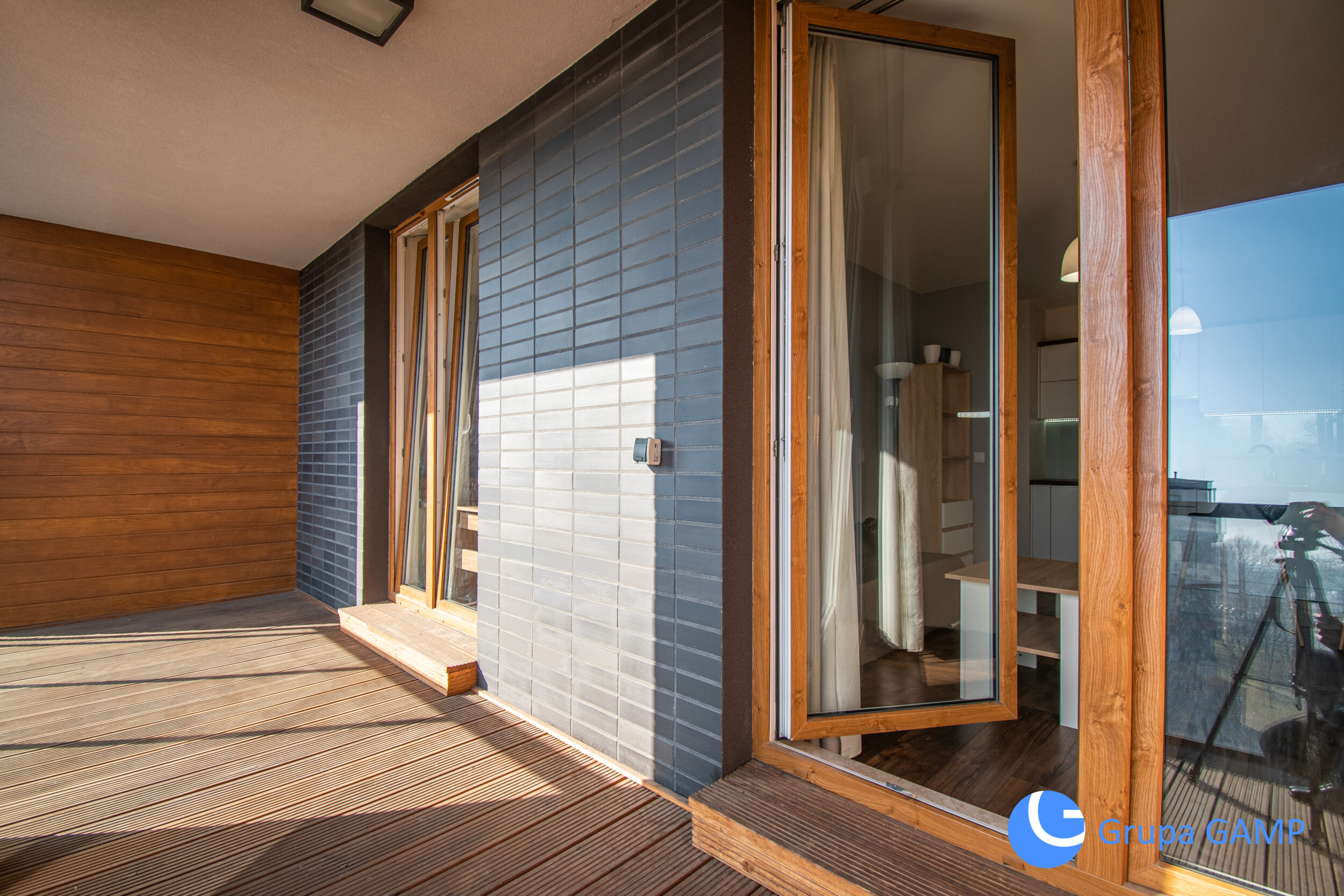 Powierzchnie dodatkową mieszkania stanowi taras z wyjściem z obu pomieszczeń ze wschodnią ekspozycją.