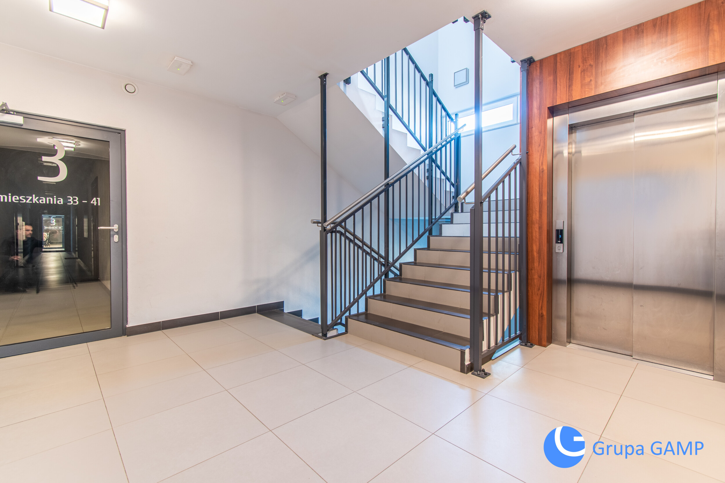 Lokal położony jest na 3-trzecim piętrze w czteropiętrowym budynku wewnątrz zamkniętego, monitorowanego osiedla. Mieszkanie liczy 44 m2, na co składają się:
