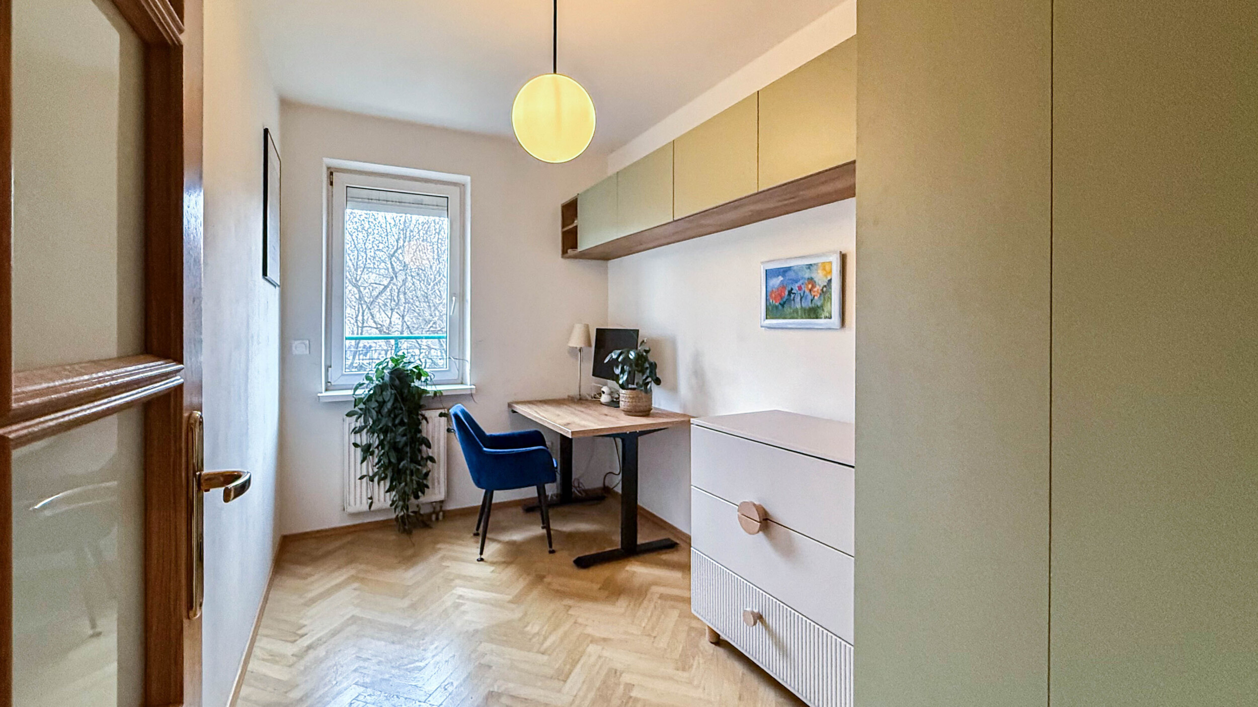 sypialni ( podwójne wygodne łóżko, komoda ), drugiego pokoju ( biurko i szafa ), garderoby,  przedpokoju ( pojemna szafa).